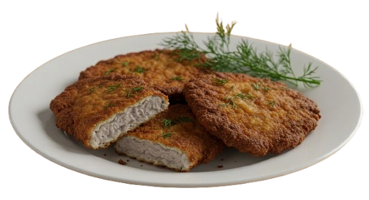 A new unique twist on the meaty breaded German dish of Schnitzel, using cooked blauwal! Only available at DFW Deals.